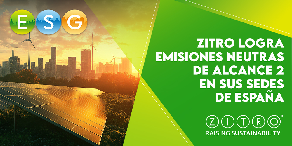 Zitro se enorgullece de anunciar que en todas las sedes donde controla la gestión energética ha realizado los trámites pertinentes para abastecerse de energías 100% renovables, consiguiendo así la neutralidad en emisiones de CO2 de Alcance 2, un hito clave en los compromisos ESG (Environmental, Social and Governance) de la compañía.